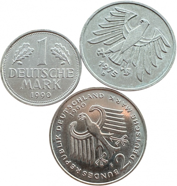 • Alemanha - 5 , 2 E 1 DEUTSCHE MARK 1975D,1990F E 1990