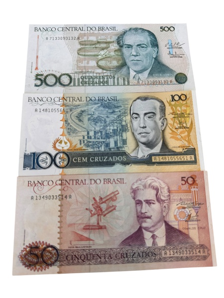 • Brasil - Cédulas de 50,100 e 500 Cruzados - FLOR ESTAMA