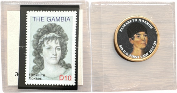 • USA - MOEDA de One DOLLAR  de 2008-P - PRESIDENTE JAMES MONROE  de um lado e sua 1ª DAMA  do outro - FLOR CUNHO + SELO DA 1ª DAMA