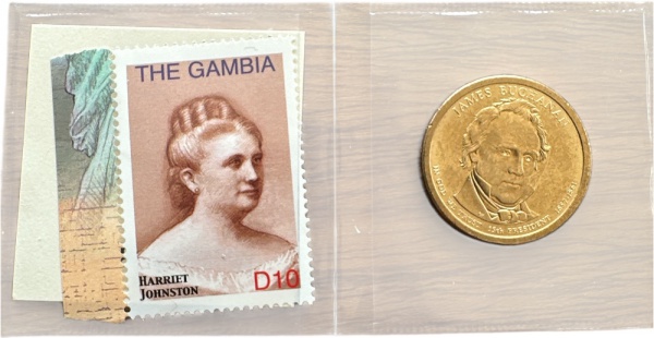 • USA - MOEDA de One DOLLAR  de 2010-P - PRESIDENTE JAMES BUCHANAN  de um lado e sua 1ª DAMA  do outro - FLOR CUNHO + SELO DA 1ª DAMA