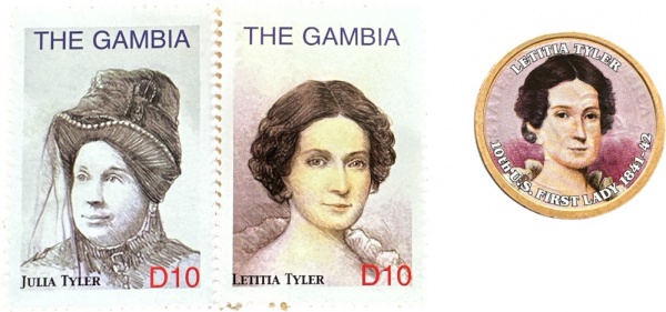 • USA - MOEDA de One DOLLAR  de 2009 - P - PRESIDENTE JOHN TYLER  de um lado e sua 1ª DAMA  do outro - FLOR CUNHO + SELO DA 1ª DAMA