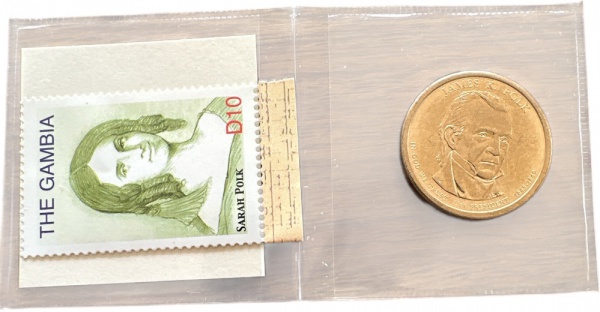 • USA - MOEDA de One DOLLAR  de 2009 -P - PRESIDENTE JAMES K. POLK  de um lado e sua 1ª DAMA  do outro - FLOR CUNHO + SELO DA 1ª DAMA