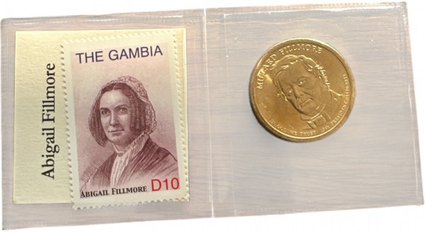 • USA - MOEDA de One DOLLAR  de 2010 -P - PRESIDENTE MILLARD FILLMORE  de um lado e sua 1ª DAMA  do outro - FLOR CUNHO + SELO DA 1ª DAMA