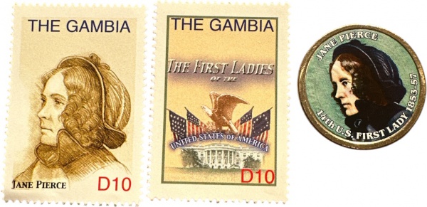 • USA - MOEDA de One DOLLAR  de 2010 -P - PRESIDENTE FKANKLIN PIERCE  de um lado e sua 1ª DAMA  do outro - FLOR CUNHO + SELO DA 1ª DAMA